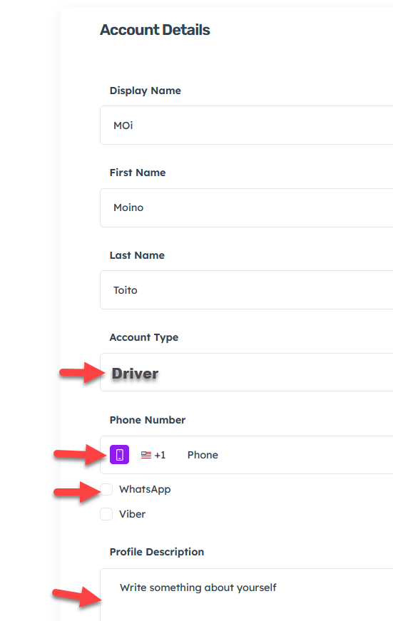 How to set up or Update your Driver’s Account