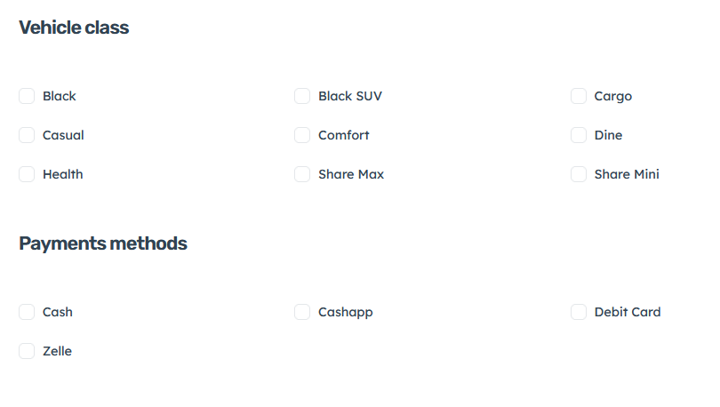In the Vehicle Class section, choose the Quiif program or programs that you would like to drive for